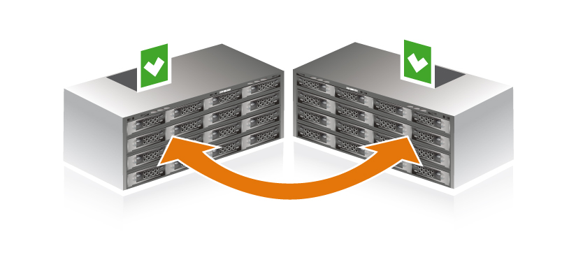 Hochverfügbare Storage Cluster bestehen aus zwei identischen Systemen, die ihren Datenbestand permanent untereinander abgleichen. Fällt das primäre System aus, übernimmt wenige Sekunden später das sekundäre System dessen Funktion. Der Administrator wird automatisch benachrichtigt und kann sich gleich um die Beseitigung des Problems kümmern.